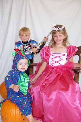 Okay this is the part where I gush in a nauseating manner about my cute kids. Those with sensitive stomachs may want to come back tomorrow. This post will not be scary in any way! Just stinking cute! Here we have a Power ranger Matthew, Princess Brittany and Joshua the friendly dragon